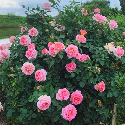 爱丽 Meibderos月季它的成熟植株大小在90*50公分左右,植株的横向扩张性好,株型饱满圆润,具有非常好的抗病性,适合在Zone6-9区进行种植。