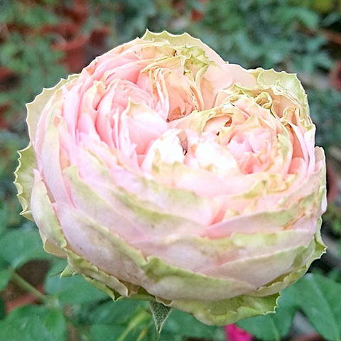 与典型的娴静玫瑰相比,简的骄傲月季的花朵形状和花瓣具有粗犷的外观和触感, 绿色的条纹给玫瑰一种“肮脏”的外观,玫瑰花瓣边缘有绿色衬里,在开花期间从粉红色到浅杏色的颜色过渡非常引人注目且引人注目,花的平均大小为6-7厘米。简的骄傲月季中等灌木大小,紧凑,多叶。对疾病和恶劣天气条件的抵抗力强。高抗白粉病和黑斑病,同时比较耐雨淋,花朵也比较耐开。