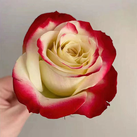 月季“女皇陛下”这个品种花色是非常惊艳红黄双色混合,花朵外面是樱桃红色,中间的奶油黄色,花瓣数量很多,杯状大花大小在10公分左右,带有淡香味。